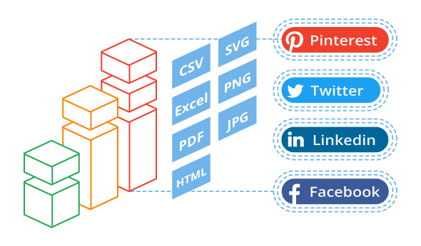 You can easily share a chart made with AnyChart JavaScript library to a social network like Facebook, Pinterest, Twitter and LinkedIn. Also it allows implementing custom integration with any other social network using image sharing functions. And of course, you can save a chart as an image in PDF, PNG, JPG or SVG formats or download chart data as Excel or CSV file.