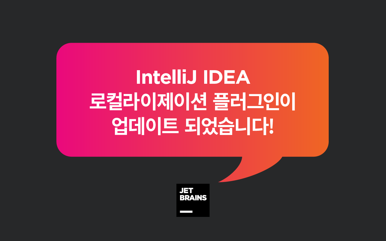 안녕하세요 JetBrains 한국 총판 단군소프트입니다. 먼저, JetBrains에 IntelliJ IDEA 로컬라이제이션 플러그인을 개선하는 데 도움을 주신 사용자 여러분께 감사드립니다! 정말 많은 분들의 피드백과 의견이 항상 저희 JetBrains 업데이트에 많은 도움이 되고 있습니다. 다시 한번 감사의 말을 전해드립니다!
