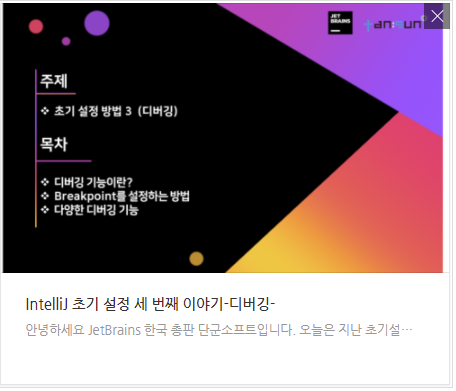 벌써 새로운 2021년이 되었습니다! 작년에 진행했던 IntelliJ의 Java 디버깅 기능에 대한 설명은 잘 보셨나요? 혹시 못 보신 분들은 아래의 링크에서 확인하세요>>