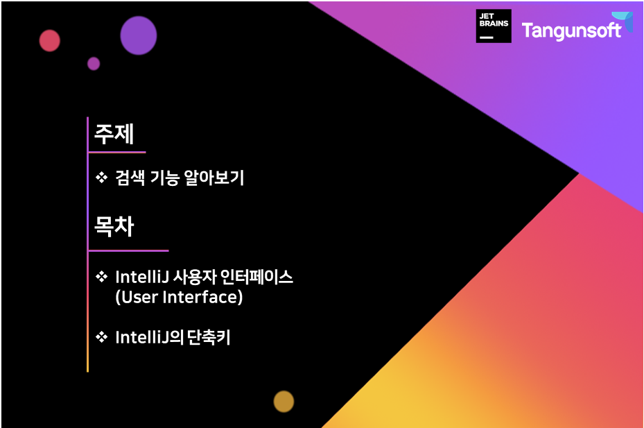 지난 시간에 이어 여러분들이 IntelliJ에서 개발을 하는 데 도움이 되는 Tip이 무엇일까 고민했습니다. 그리고 준비한 오늘의 JetBrains 사용자 교육 웨비나의 주제는 바로 ‘IntelliJ 검색 기능 알아보기’입니다. IntelliJ를 더 잘 사용하기 위해서는 검색 기능을 활용하는 것이 정말 중요한데요. 그럼 자세한 내용을 알아보러 가보실까요??