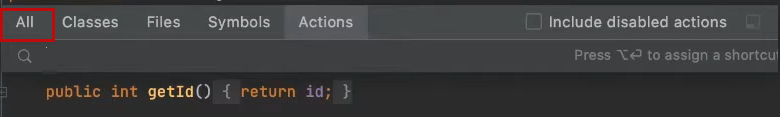클래스, 파일, 심볼 검색 시 검색창(Search everywhere) 상단의 All 탭을 누르시면 됩니다.