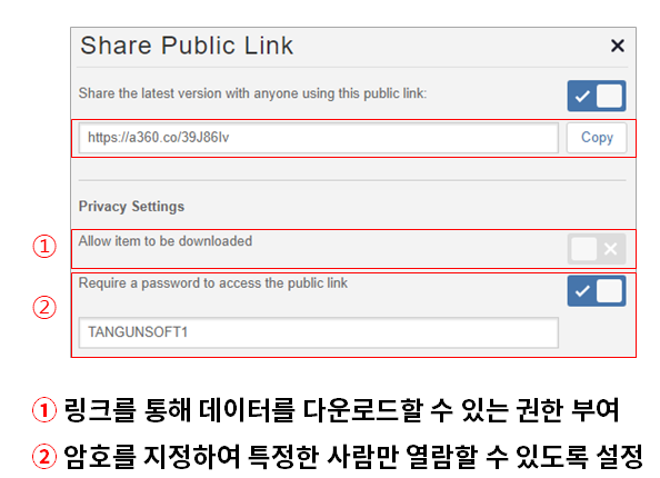 공유 링크 생성하기 작업 ①을 필수적으로 하셔야 합니다.