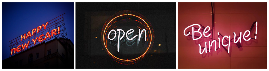 우선 내가 어떤 네온사인을 만들지 정해야겠죠? 컨셉 정하기 크게 텍스트와 그림이 있습니다. 나만의 상징적인 시그니처가 있었으면 하시는 분들은 그림, 간판이나 가게 내부에 사람들을 혹하게 할 만한 멘트를 적고 싶으신 분들은 텍스트를 추천해 드립니다 :) 원하는 그림이 없으시다면 아래 사이트 링크를 여러 개 걸어 두었으니 참고하셔도 좋습니다. ● Beautiful Free Images & Pictures | Unsplash 원하시는 문구와 텍스트를 정하셨다면 그에 맞게 컬러도 미리 정해주세요. 그럼 본격적으로 시작해 볼까요? (*시작하기에 앞서, 이 포토샵은 영어 버전이 아닌 ‘한글 버전’입니다*) 1. 텍스트 툴: 저는 오늘 네온사인을 만들 겁니다. 텍스트 툴을 이용해 정하신 문구를 적어주세요. 혹은 배경 없는 png를 끌고 오셔도 무관합니다 :) (Tip! 폰트는 볼드할수록 네온 느낌이 더 살아요)