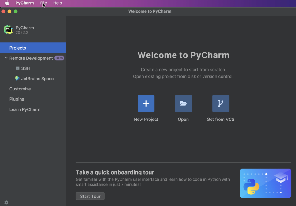 시작 화면에서 ‘New Project’를 클릭할 수도 있습니다.
