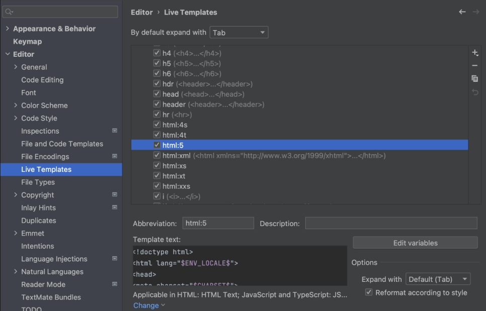 도움말 페이지에서 PyCharm이 템플릿에 어떤 도움을 주는지 자세히 알아볼 수 있습니다. 라이브 템플릿을 사용하는 방법 작업을 최적화하기 위해 동일한 코드를 여러 번 작성하는 대신 라이브 템플릿을 만들 수 있습니다. 코드 스니펫을 확장하려면 해당 템플릿 약어를 입력하고 ⇥를 누릅니다. 템플릿의 한 변수에서 다음 변수로 이동하려면 ⇥를 길게 누릅니다. ⇧ ⇥를 누르면 이전 변수로 이동합니다.